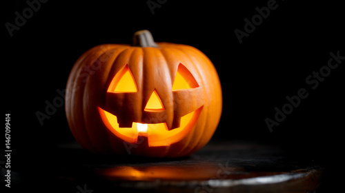 Illuminated jack o lantern creating warm autumn evening ambiance