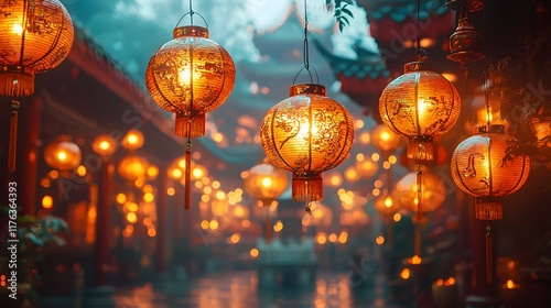 Illuminated lantern festival celebrating culture in a serene temple courtyard nighttime ambience artistic viewpoint