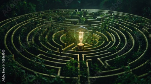 "Illuminated Light Bulb, Central Maze Design, 3D Rendering"