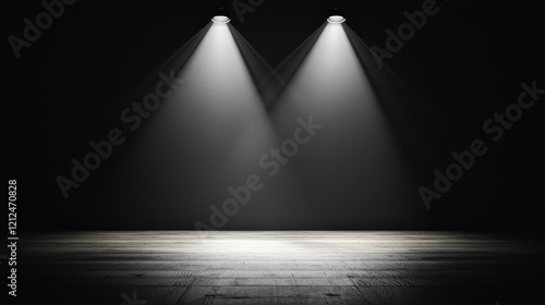 Illuminated minimalist stage backdrop empty performance space dramatic lighting theatrical environment