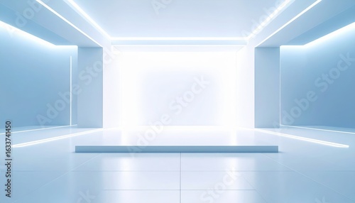 Illuminated modern stage design studio visual content minimalistic environment wide angle creative presentation