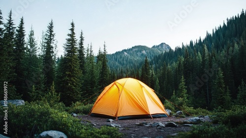 camping, tent, outdoors, nature, forest, mountain, tree, landscape, adventure, travel, wilderness, exploration, recreation, relaxation, serenity, peace, calm, quiet, solitude, night, evening, dusk, light, glow, illuminated, scenic, beautiful, picturesque, view, summer, vacation, holiday, escape, freedom, journey, expedition, discovery, environment, wood, pine, evergreen, hiking, backpacking