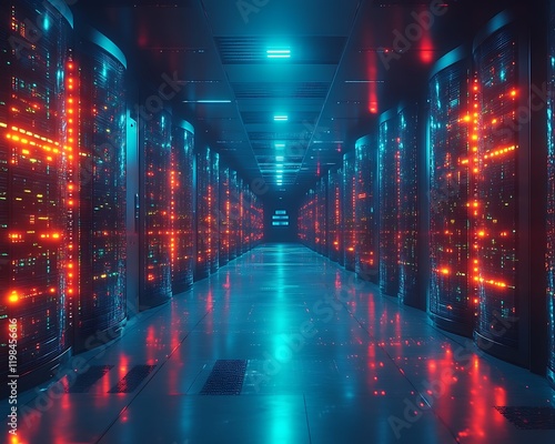server, room, datum, center, technology, network, cyberspace, digital, computer, storage, hardware, infrastructure, futuristic, modern, glowing, light, neon, blue, red, dark, corridor, aisle, rack, cabinet, server, powerful, fast, efficient, secure, processing, information, communication, computing, system, architecture, design, innovation, progress, future, global