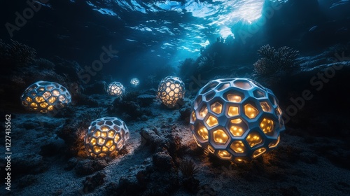 Illuminated Spheres Underwater: A Magical Ocean Scene