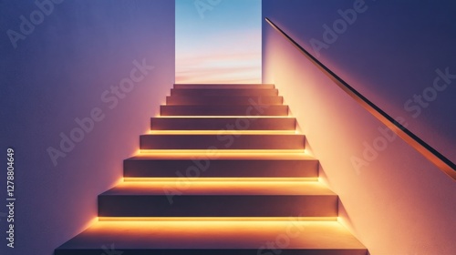 success, progress, future, ambition, growth, achievement, opportunity, aspiration, goal, journey, path, way, stair, step, staircase, ascent, climb, rise, elevation, ladder, light, illumination, glow, bright, sky, sunset, horizon, hope, dream, vision, perspective, direction, route, destination, target, forward, movement, advancement, development, escalation, upward, leading, reaching, arrival, modern, architecture, design