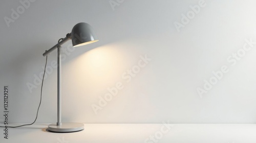 Illuminated Workspace A Single Modern Desk Lamp Casts a Warm Glow Against a Neutral Background, Perfect for Minimalist Designs and Modern Interiors