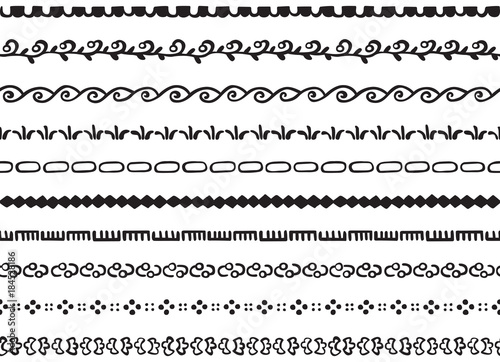 swirl, flower, dot, circle, square, wave, illustration, hand-drawn, abstract, seamless, repetition, decoration, decorative, design, detail, element, border, set, ten, black, doodle, line