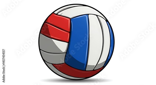 Illustrated Volleyball with Red, White and Blue Panels on White