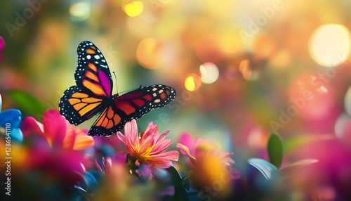 Illustration - Butterfly in a Colorful Flower Garden Background