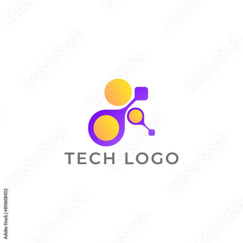 ILLUSTRATION CONNECTED CIRCLE GRADIENT PURPLE ORANGE COLOR WITH DOT TECH LOGO ICON TEMPLATE SIMPLE DESIGN ELEMENT VECTOR