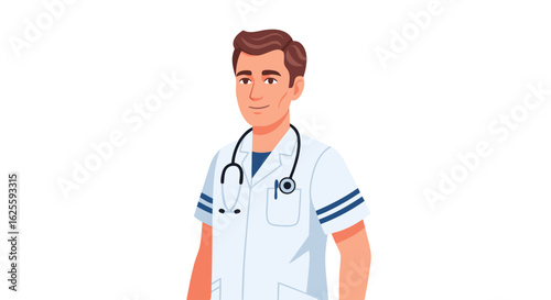 doctor, health care, professional, stethoscope, uniform, medicals, practitioner, physician, clinician, health, medicine, care, treatment, wellness, service, assistance, diagnosis, exam, check-up, check, routine, appointment, patient, hospital, clinic, provider, men at work, staff, cartoon, graphic, illustration, drawing, digital, art, design, isolated, confident, happy, positive, smiling, friendly, trustworthy, helpful, expert, male, man
