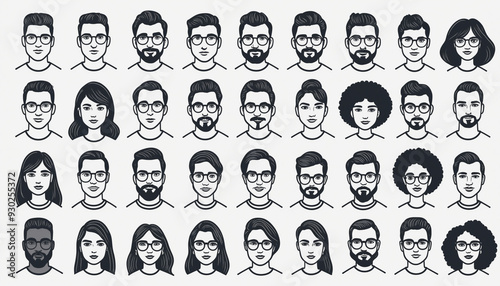 diversity, portrait, icon, avatar, many, illustration, people, photo, profile, vector, face, head, people, woman, cartoon, comic, black-and-white, simplified, efficient, modern, smiling, united, team, work, business, person, people, symbol, world, business, expression, drawing, cartoon, smile, goggles, skit, different, aged, childhood, bald, bearded, tolerance, deal, farmland, mixture, tradition, pictograph