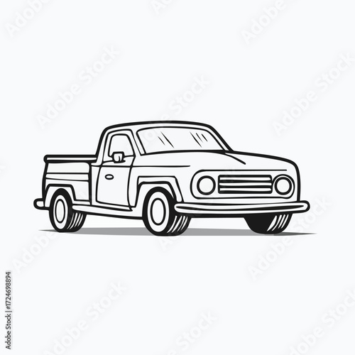 Illustration of a classic pickup truck in black and white outline.