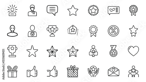 achievement, reward, recognition, outline, icon, star, trophy, medal, gift, like, nubes, person, badge, ribbon, percentage, tags, hand, envelope, group, award, success, best, quality, approved, feedback, rating, leadership, employee, winner, premium, promotion, celebration, appreciation, excellence, top, choice, favourite, valuable, recommended, guarantee, client, service, support, teamwork, community, motivation, goal