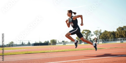 Illustration of a competitive athlete sprinting on a track, physical activity, competition