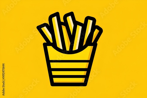 illustration, fries, fast food, container, yellow, crispy, snack, food, design, graphic, tasty, delicious, meal, culinary, eatery, cookery, potato, texture, vibrant, playful, appetising, comfort, indulgence, icon, drawing, visual, cartoon, fun, epicure, side dish, take-away, gold, popular, serving, enjoyment, treat, colourful, creative, design element, artwork, representation, imagery