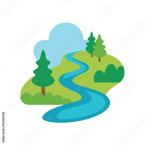 tree, nature, vector, illustration, landscape, plant, spring, summer, leaf, forest, cartoon, art, design, grass, flower, sky, colours, sun, garden, season, water, ecology, environment, river, park