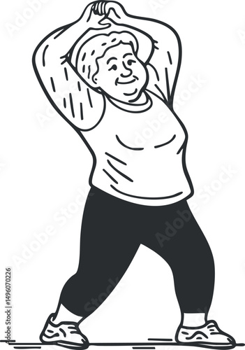 Illustration of a senior woman stretching her arms above her head during fitness exercise outdoors