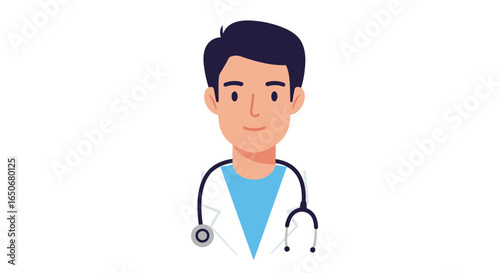 Illustration of a Smiling Male Doctor with Stethoscope for Healthcare Professionals