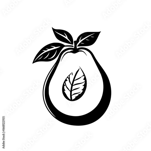Illustration of a stylized pear with leaves showcasing simplicity and elegance in design