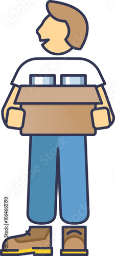 Illustration of a volunteer holding a box, symbolizing community service and aid.