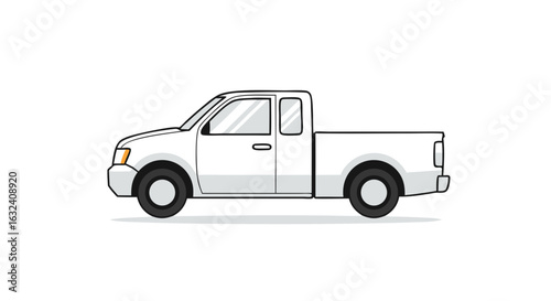 truck, pickup, vehicle, white, automotive, illustration, transport, transportation, isolated, design, graphic, automobile, side, view, tire, wheel, car, auto, profile, chassis, motor, light, lamp, bumper, cab, door, mirror, handle, window, panel, frame, rim, hubcap, plain, flat, style, simple, clean, cut-out, contour, model, object, background, element, drawing, generic, contemporary, utility, commercial