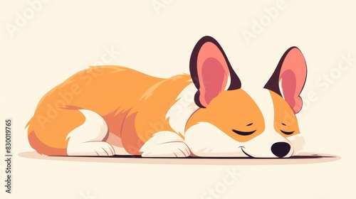 Illustration of an adorable corgi dog sleeping in cartoon 2d style This premium isolated 2d embodies the essence of animal nature icons with a charming flat design