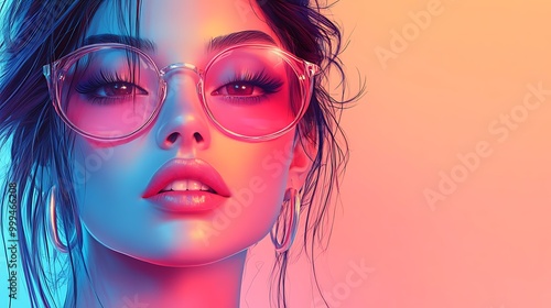 Illustration of an Animated Fashion Girl on a Plain Background with Trendy Outfit and Confident Pose