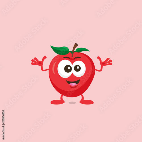 apple, happy, mascot, fruit, character, food, isolated, flat, cute, red, smile, decisive, healthy, positive