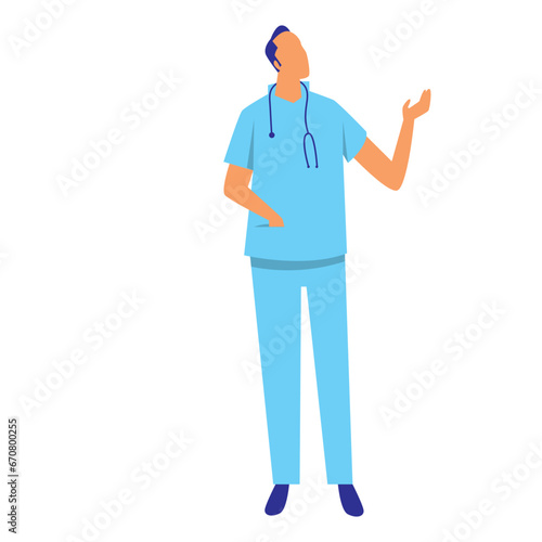 Illustration of Faceless Male Doctor Character Explaining Something. Vector Design
