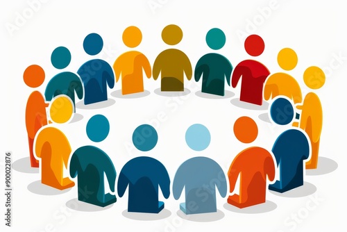 Illustration of human figures forming a circle collaborative and united theme vibrant and dynamic visual