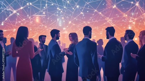Illustration of interconnected professionals networking and collaborating in a team setting, emphasizing communication and teamwork.