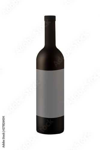 illustration of matt bottle of red wine with label, wine bottle mockup