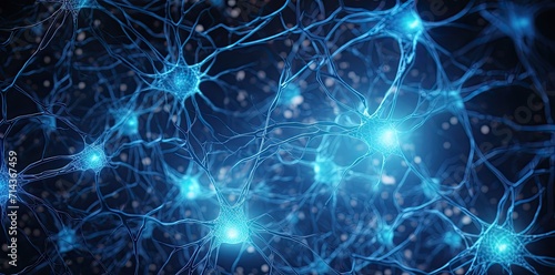 Illustration of neuron cells with glowing link knots. Human brain, science and neurology concept.