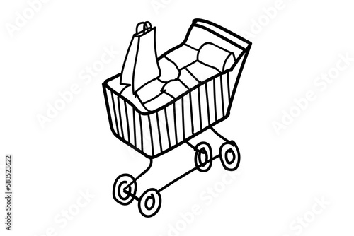no people, illustration, shopping cart, white background, studio shot, cut-out, outline, copy space, empty space, blank space, computer graphic, graphic, vector, shopping, buying, black