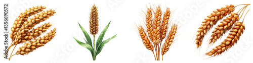 Illustration of various wheat types showcasing unique characteristics and textures, representing agriculture and harvest. Transparent PNG background, commercial use
