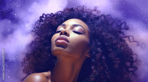 Illustration of woman sleeping and dreaming. Psychic girl considers mind and heart, spirituality, esotericism. Psychic waves concept, Generative AI illustration
