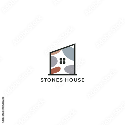 ILLUSTRATION ROCK HOUSE. ARCHITECTURE BUILDING SIMPLE MINIMALIST LOGO ICON FLAT COLOR DESIGN VECTOR. GOOD FOR REAL ESTATE, PROPERTY INSDUSTRY