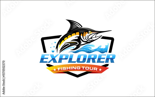 adventure, recreation, logotype, hook, fish boat, sport, fisherman, river, bass, boat, graphic, vector, sea, template, hobby, lake, vintage, water, catch, wild, splash, illustration, fish, outdoors, mouth, fly, food, black, fishing, nature, wildlife, design, modern, tournament