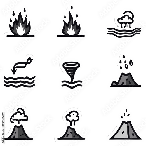 Illustrative Icons Representing Natural Disasters and Environmental Phenomena Abstract