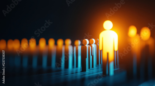 image depicts group of wooden figures with one figure illuminated, symbolizing leadership and teamwork in business context