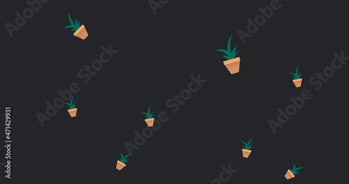 Image of illustration of houseplants in pots falling on black background