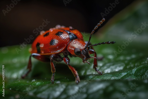 Image of ladybird or ladybug on the green leaf. Insect. Illustration. Generative AI.