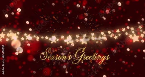Image of light spots over season's greetings text on red background