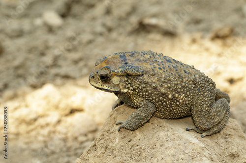 Image of toad(bufonidae) is on the soil lump. Amphibian. Animal.