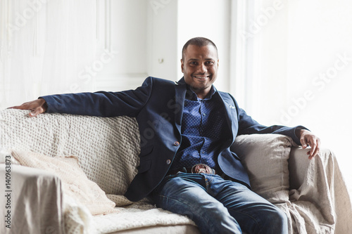 african, male, casual attire, relax, happy, guy, photogenic, home, adult, smart, young, person, smile, toothy, attractive, 1, sitting, lifestyle, african american, cheerful, comfort, confident, ethnicity, friendly, human, indoor, inside, looking, man, modern, people, posing, positive, shirt, jacket, restful, seated, smiling, style, successful, american, couch, horizontal, soft, living, lounge, portrait, relaxed, room, sofa