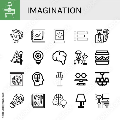 imagination, icon, set, vector, lamp, idea, sketchbook, layout, magician, brain, designer, artificial, light, studio, cognition, creative, illustration, symbol, signs, design, graphic, technology, web, flat, line, business, concept, bulb, art, outline, isolated, innovation, thinks, black, creativity, simple, power, solution, drawing
