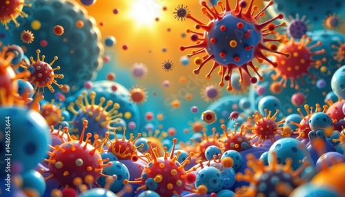 imagine a mesmerizing artwork showcasing a microscopic world teeming with vibrant bacteria and microorganisms, in this scene, the viewer is immersed in the world of microbiology