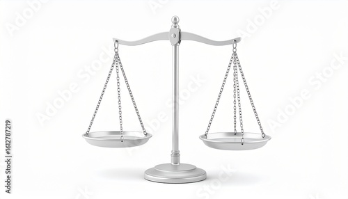 scale, scale, balance, justice, law, legal, equality, fairness, judgement, decision, verdict, truth, right, ethic, morality, principle, equity, equilibrium, harmony, stability, comparison, choice, dilemma, weigh, measure, evaluate, assess, silver, metallic, chrome, grey, white, monochrome, isolated, white background, cut-out, copy space, minimalist, clean, simple, elegant, classic, traditional, three-dimensional, render, illustration, rendering