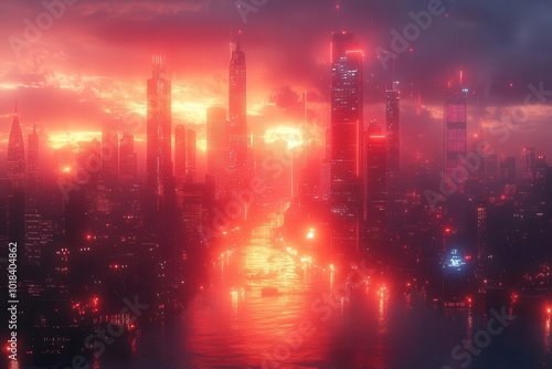 cyberspace, futuristic, neon, technology, city landscape, energy, connectivity, innovation, science fiction, digital artwork, network